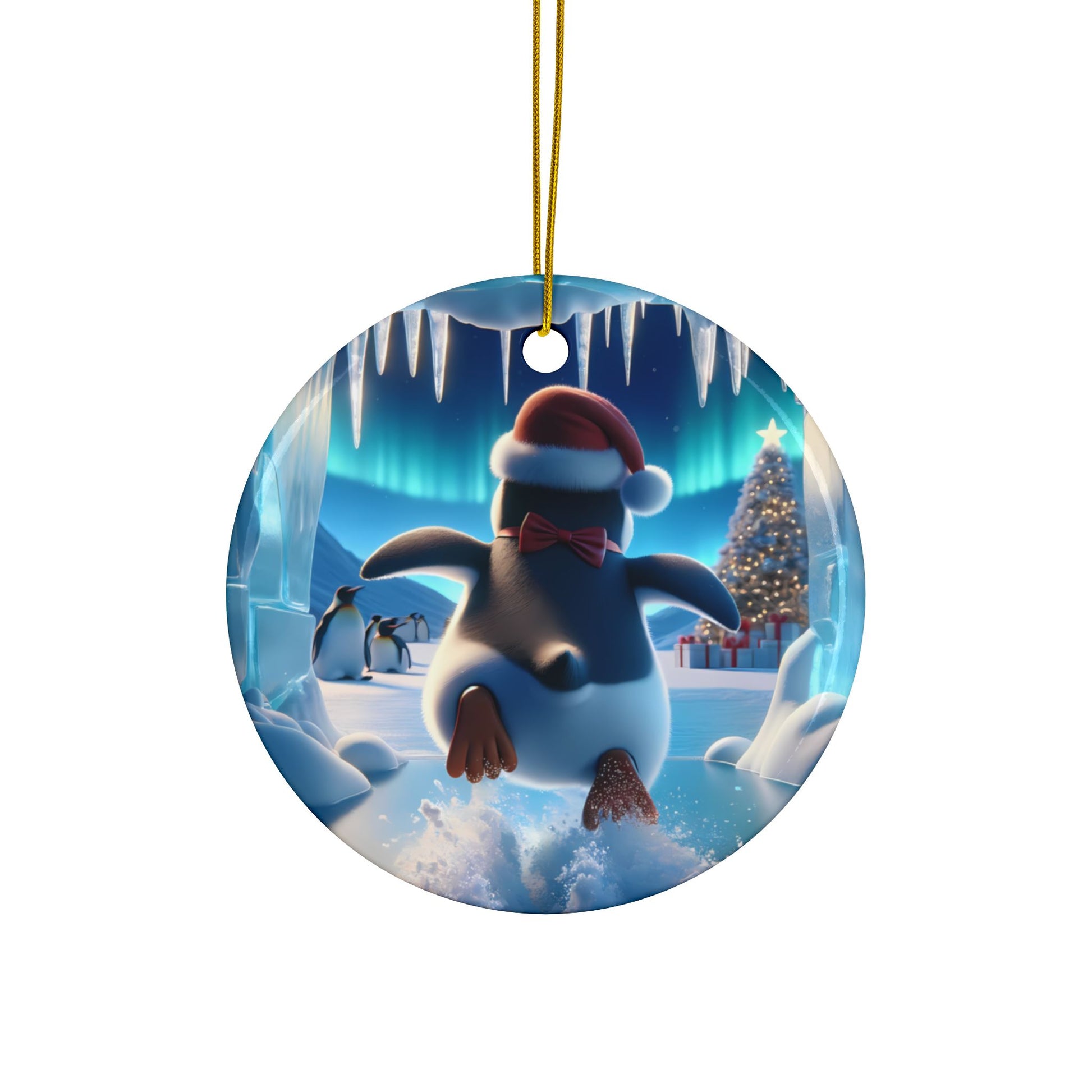 Cute Break-Through Penguin Ceramic Ornament, Double-Sided